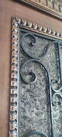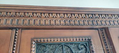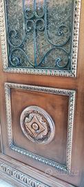 Mobile di manifattura artigianale con particolari intarsi su tutti i lati e sugli sportelli, vetrina con disegni in rilievo fatti a mano. I piedi del mobile sono a zampa di leone. È suddivisa in tre ante e al suo interno sono presenti i ripiani.