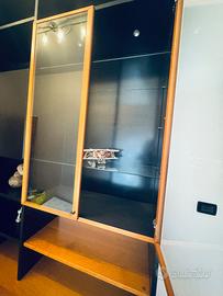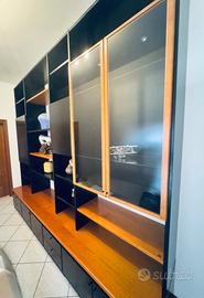 Vendo mobile libreria come da foto. In uno dei ripiani è stata inserita della carta nera, solo per uniformare il colore; è facilmente removibile (vedi foto). È presente un piccolo segno, come mostrato in foto. Per il resto il mobile è in ottimo stato. Smontaggio e trasporto a carico dell’acquirente.