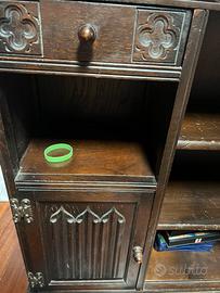 Piccola libreria con tre ripiani due cassetti e due porticine in legno massello .con qualche segno dell eta’.