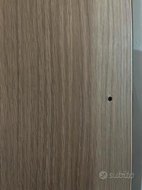 Mobile con 7 ripiani Ikea Pax con anta beige/grigio lucido, alta 236 cm, larga 50cm e profonda 35 cm. Il mobile è in ottimo stato e presenta due forellini in alto sul fianco di sinistra e uno sul fianco destro ( come si vede in foto) per il fissaggio al muro o ad altri mobili.