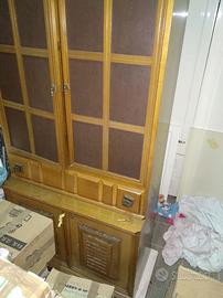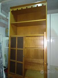 Mobile libreria adatto per soggiorno o salone, alto e robusto, ideale per stanze stile classico antico. In legno di noce, con mensole esterne, un cassetto e sportelli interni superiori e inferiori con ripiani. In buone condizioni. Misura circa: altezza 2m e 50, larghezza 89cm, profondità 46cm.