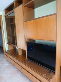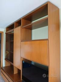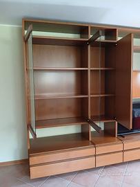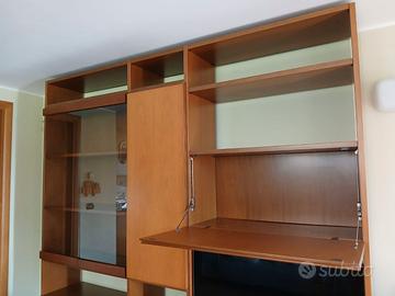 Mobile libreria per soggiorno completo di cassetti, ante e vetrina.