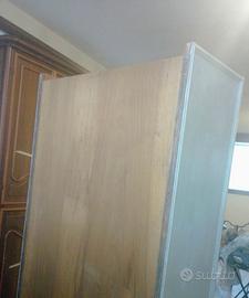 Vendesi mobile libreria scaffalatura in legno massello e tamburato larghezza 85 cm altezza 215 cm profondità 40 cm con 3 scaffali più ampio scomparto chiuso acon un ripiano . Come nuova, presenta solo una sbeccatura vicino alla chiave dovuta al trasloco. Mobile di pregio