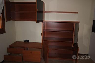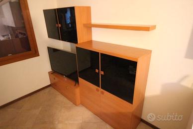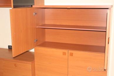 Mobile che si può combinare in diverse maniere, come si vede in foto, che funziona da portaTv, libreria + porta oggetti vari con cassetti da 53cm di profondità, ogni elemento è largo 120cm come la mensola. Condizioni perfette senza strisci nè umidità.