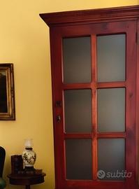 Libreria Vintage Stile Coloniale in legno massiccio tropicale con due ante con vetri. Mobile in ottime condizioni. Ritiro ad Aiello del Friuli. Dimensioni: altezza 185 cm larghezza 68 cm profondità 50 cm