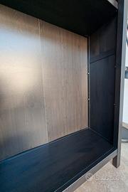 Modello Hemnes tenuto benissimo. Misure 88.5 x 198 h x 34 cm . Colore nero. 5 ripiani interni più base. Capiente e robusto. Trasporto a cura dell acquirente.