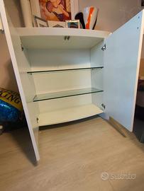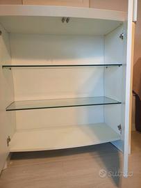 Madie Daytona mod. San Giacomo. Laccate bianche opaco, 105x112,5x50. Due ripiani in vetro. Trasporto da concordare. Eventualmente 2 disponibili.