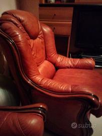 divano e due poltrone in pelle(rifinitura con legno), tavolo di legno da sala. si può comprare divano più due poltrone =1300€.solo tavolo 350€