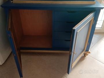 mobile con cassettiera, riverniciato blu e oro