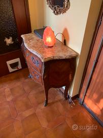 Mobile per entrata in stile Luigi XV, doppio cassetto, piano in marmo, ottime condizioni a parte le scheggiature riportate in foto. Lo vendo allo stesso prezzo a cui l’ho comprato pochi anni fa, prezzo leggermente trattabile, ritiro in Albignano d’Adda (MI) in appartamento al secondo piano (no ascensore).