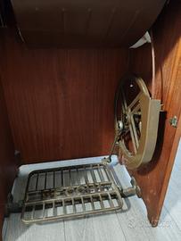 Vendo elegante mobile in legno con macchina da cucire vintage Necchi, perfettamente integrata nel piano richiudibile. ✔ Struttura solida e robusta in legno con bellissima finitura lucida ✔ Meccanismo originale a pedale funzionante (con volano e trasmissione) ✔ Macchina elettrica inclusa ✔ Mobile richiudibile salvaspazio, ideale anche come complemento d’arredo ✔ Vano interno per accessori Il mobile si presenta in buone condizioni estetiche, con normali segni del tempo che ne valorizzano il fascino vintage. Ideale per appassionati di cucito, collezionisti o come pezzo d’arredo retrò Misure: Chiuso: 55.7 cm x 43.7cm x 78.5 cm Aperto: 110.5cm x 43.7 cm x 103 cm