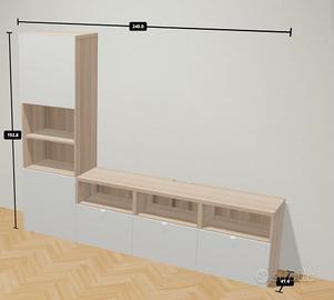 Vendo mobili tv Ikea modello besta compreso di n.3 cassetti bianco opaco con chiusura ammortizzata ,n.3 ripiani a giorno,colonna con n.2 sportelli bianco opaco, n.1 sportello in vetro con cornice bianca e n.5 ripiani.