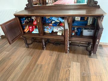 Mobile madia antica in legno massello. Dimensioni: Lunghezza 200 cm Profondità 60 cm Altezza 102 cm Altezza specchio 72 cm