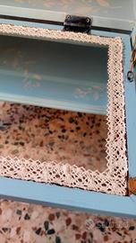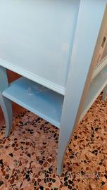 Mobile madia/credenza. Colore azzurro chiaro. Due cassetti w un anta in vetro. Ottima soluzione per un entrata , uno studio o altri luoghi per creare un angolo particolare.