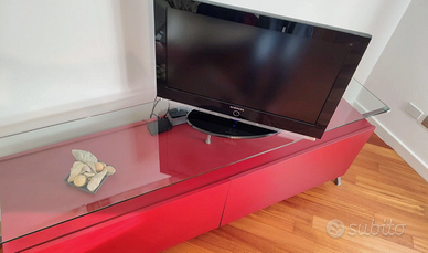 Condizioni molto buone come da foto scattate nel febbraio 2026: solo qualche segno di normale usura. Lunghezza 196 cm, larghezza 50 cm, altezza 73 cm. Il ripiano di vetro sostiene una TV a LCD del peso di circa 15Kg.