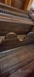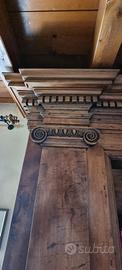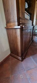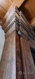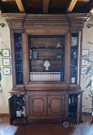 Libreria a due corpi, composta da una parte sottostante a credenza (due sportelli) e una parte superiore aperta con nei due lati due colonne stilizzate con sopra due capitelli ritagliati. Il mobile è toscano e di epoca prima metà del '700.