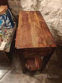 vendo per esubero, mobile massello, probabile abete, 2 cassetti privo di rotture, ha solo bisogno di una bella pulita ed una bella lucidata, qualche piccolo segno sulla base, ma non sono rotture.
