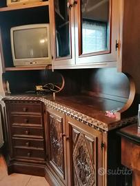 MOBILE ANGOLARE MASSICCIO DI NOCE CARNICO INTAGLIATO DA UN MAESTRO DEL LEGNO A SUTRIO CIRCA 50 ANNI FA. DISPONIBILE ALLA VISIONE - RITIRO SUL POSTO - PREZZO LEGGERMENTE TRATTABILE