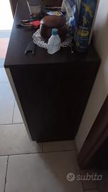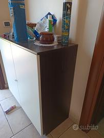 Mobile come nuovo, poco usato. Non è Ikea ma molto più massiccio e resistente . Versatile. Larghezza cm 96, profondità cm 40, altezza da terra cm 90. Un ripiano interno e due sportelli a battente. Bicolore: marrone scuro e sportelli color panna/beige.