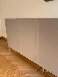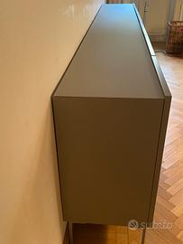 Mobile MisuraEmma modello Tao10 color argilla opaco con top in vetro stesso colore lunghezza 287, altezza 82.5 (di cui 17 di piedini), profondita 41. Suddiviso in 3 ampi spazi interni di 93x30-31x30.