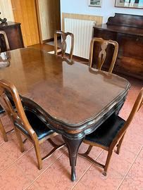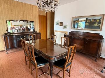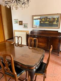 Vendo due credenze e tavolo stile chippendale fine anni ‘30, uno con specchio. Insieme a sei sedie, rifatte sullo stile dei mobili, negli anni 1984.
