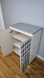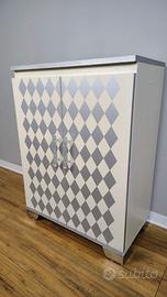 Mobiletto moderno ed elegante, perfetto da ingresso o mobile multiuso, molto capiente, dipinto a mano. Impreziosito da maniglie in resina fatte a mano.