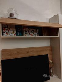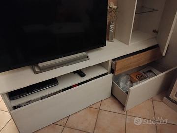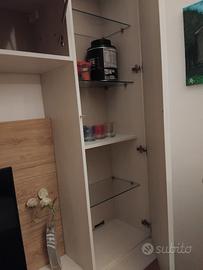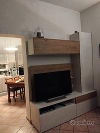 Mobile soggiorno moderno con pannello porta TV come da foto. Composto da base con 2 cassettoni, uno con vano a giorno sopra, l'altro con cassetto; colonna vetrina con ripiani in vetro e legno, colonna orizzontale sopra Tv; pannello in tinta porta TV. Misure 195x50x230 cm (altezza vetrinetta). Acquistano da mobiliere della zona, no mercatoni vari (prezzo dimostrabile) tenuto benissimo, come nuovo. Smontaggio e trasporto a carico dell'acquirente. Non si effettuano spedizioni.