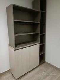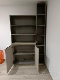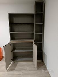 mobile con ante, ripiani con porta bicchieri e lato libreria a giorno. misure 140x250x40. ripano in marmo