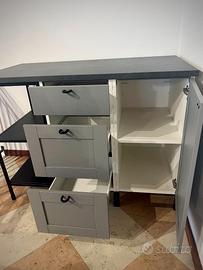 Vendo composizione mobile modulare IKEA ENHET con piano di lavoro IKEA EKBACKEN, colore grigio effetto cemento. Design industriale e moderno, ideale per negozio, ufficio, studio creativo o ambiente domestico.