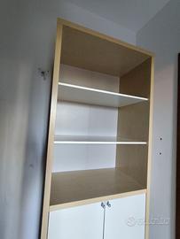 Mobile multiuso Ikea In colore larice e bianco Parte bassa con ante e ripiani, parte alta ripiani a vista Presenta qualche segno di usura