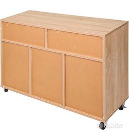 Vendo BAKAJI Mobile Multiuso Porta Stampante in Legno con 3 Mensole, 2 Cassetti con Chiave e 1 Armadietto con Scomparti, Mobiletto da Ufficio Archivio Portadocumenti con Ruote Mobili, 100×35x65cm (Quercia)