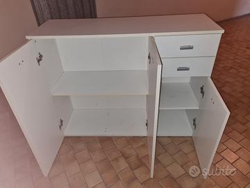 vendo mobiletto colore bianco in legno multiuso due ante piu cassetti porta oggetti senza segni di usura