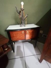 E comodino in perfette condizioni restaurato con vetro colore bianco opaco (70 euro)