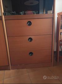 Mobile anni '70 in legno, con cassettoni centrali più alti di quelli laterali. Può essere dà salotto, dà sala da pranzo, da ufficio per documenti e libri.