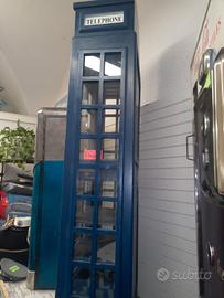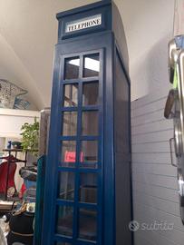 Spettacolare ed unico mobile cabina telefono Inglese originale tutta dipinta a mano colore blu cobalto acceso.