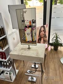 Vendo mobile Excel parrucchiere per inutilizzo. Mobile doppia faccia con due prese prese e due poggiapiedi. Solo mobile 300€ con le due poltrone 400€ C’è la possibilità di acquistare altre 5 poltrone.