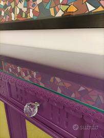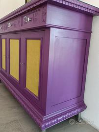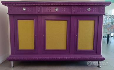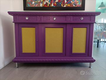 Solo per chi desidera arredare una parete importante di casa, ufficio, negozio, banca, albergo, casa in montagna o al mare ecc ecc, un mobile ridipinto in un bellissimo viola opaco con nelle portine inserti in stoffa vellutino verde acido..( ridipinto solo esternamente ) più un quadro totalmente in pelle fatto a mano e ogni pezzo cucito con il filo in tinta, un'occasione unica che a malincuore vendo perchè tutto fatto con le mie mani...sono 363 pezzi di pelle e il suo titolo è.( ciascuno di noi attende il tuo sguardo). Solo il mobile euro 700 Solo il quadro euro 1.500 Tutti e due assieme euro 2.000 Solo interessati e avviso già da subito .PREZZI ASSOLUTAMENTE NON TRATTABILI. Non spedisco ma chi acquista deve venire a ritirare lui di persona. misure del mobile in mm larghezza 1770 X profondità 545 altezza 1120 compreso piedini e sopra il mobile c'è una lastra di vetro smussato per proteggere il legno e appoggiare qualsiasi cosa come soprammobile. misure quadro in mm larghezza 1565 altezza 850 ps: non fate caso al costo di spedizione , ho dovuto mettere una cifra a caso x fare l'annuncio ma si dovrà calcolare al momento degli accordi presi. Grazie e buon sorriso a voi. Carlo