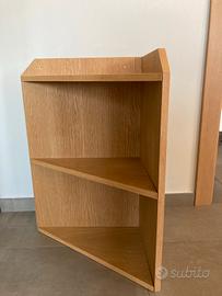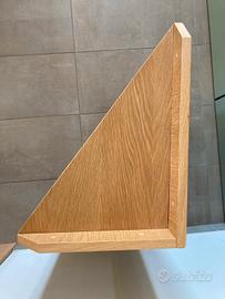 Vendo pensile angolare in legno rifinito Rovere naturale. Mobile artigianale fatto a mano. Altezza 72 cm Larghezza 46 cm Profondità 34 cm Interasse ripiani 30 cm Spessore legno 2 cm