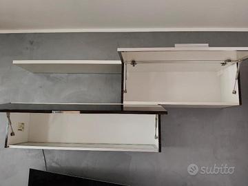 Mobile da appendere al muro con illuminazione incorporata. Condizioni pari al nuovo. Dimensioni: lungh. 180cm, largh. 33,5, altez. 70. Il mobile fa parte di un insieme di 3 elementi (vedasi altri miei annunci). Mobile smontato, da venire a prendere a Gorizia. Se acquistato con gli altri due elementi, faccio un buon prezzo per l'insieme.