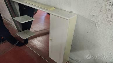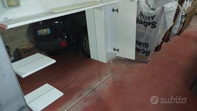 mobile pensile per bagno laccato bianco con specchiera e mensole in ottimo stato