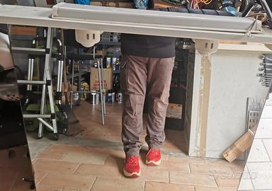 Lo specchio in foto si vede male, ma è semplice e sulla cornice c'é l'impianto elettrico. Mobile usato, ma nessun difetto importante, va solo un po' sistemato.