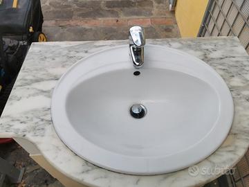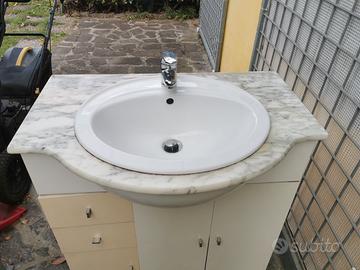 Vendo mobile per bagno con piano in marmo, lavandino porcellana e miscelatore. È completo di specchio con luce. Larghezza 80 cm.