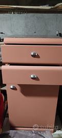 Mobile per bagno completo di 2 componibili: il primo con lavabo rotondo inserito su lastra di marmo rosso verona misure cm 120 largo cm 64, con 4 cassetti laterali, molto capienti, e 4 vani contenitori nella parte bassa; il secondo sempre lastra di marmo con due cassetti e un vano contenitore sotto di cm 40 largo cm 34. Il tutto è alto cm 85. È stato sistemato da falegname circa 1 anno fa. Ritiro presso garage a carico dell'acquirente. Prezzo euro 900,00.