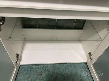 Mobile per bagno sotto lavandino con tipiano e ante in vetro semi trasparente, come da foto. Lunghezza 68,5 X profondità 35 cm X altezza 55,5 cm