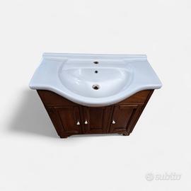 Mobile per bagno in legno con tre porte altezza 84 lunghezza 85 larghezza 48. Con vasca in ceramica profondità 16.