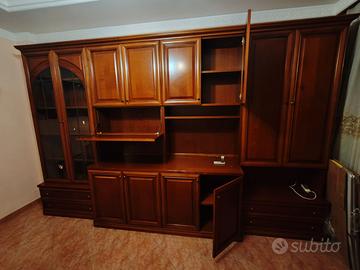 Regalo mobile per camera da pranzo in legno noce massello, composto da cristalliera e vano televisore come da foto. Misure L. 387cm x H. 240cm x P. 50/60cm. Ritiro, smontaggio e trasporto a carico dell'interessato.