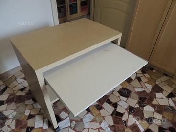 Mobile per computer con rotelle, cassetto per tastiera e con canala raccogliere i cavi sul retro.