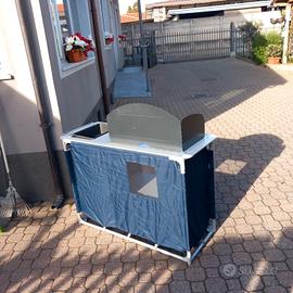 Bellissimo mobile per cucina da campeggio smontabile con paravento e vaschetta. Praticamente nuova usata solo una volta, modello Alicante della Campart. Pagata 170€ svendo a solo 100€ perché non potrò più fare campeggio. Lung. 121 cm