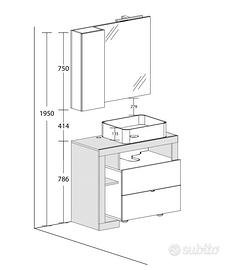 Ciao a tutti, metto in vendita un mobile per il bagno completamente nuovo (non lo abbiamo nemmeno montato) a causa di errore di misura al momento dell'acquisto, in allegato le foto del mobile date dal sito di vendita originale, le foto dello stato del mobile in casa e le specifiche delle misure, non dubitare in contattarmi per eventuali chiarimenti. Un mobile bagno moderno composto da 2 capienti cassetti e vani a vista: effetto legno e stile minimal: - Mobile bagno a terra con 2 cassetti - Dotato di armadietto sospeso con ripiano interno - Lavabo, specchio e LED sono inclusi Questo componibile a terra è composto da 2 capienti cassettoni, nei quali puoi riporre ordinatamente i tuoi accessori bagno, e da un elegante lavabo da appoggio che donerà al tuo ambiente un tocco sofisticato. Incluso c’è anche uno specchio dotato di pensile a un’anta. Misure del prodotto 92 x 49 x 195cm (larghezza, profondità, altezza Al momento dell'acquisto procederò a inviare la scheda istruzioni di montaggio.