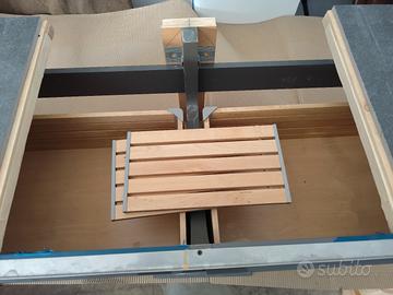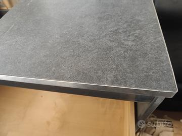2 cassetti L 69,5 ciascuno P 35,00 Spazio per lavabo L 59,00 P. 49,5 (misure interne) Il piano è stato realizzato in gres grigio scuro e bordato di inox. Montava un lavabo bianco della Catalano rettangolare (non in vendita). Ottime condizioni tranne fianco dx (si potrebbe sostituire)